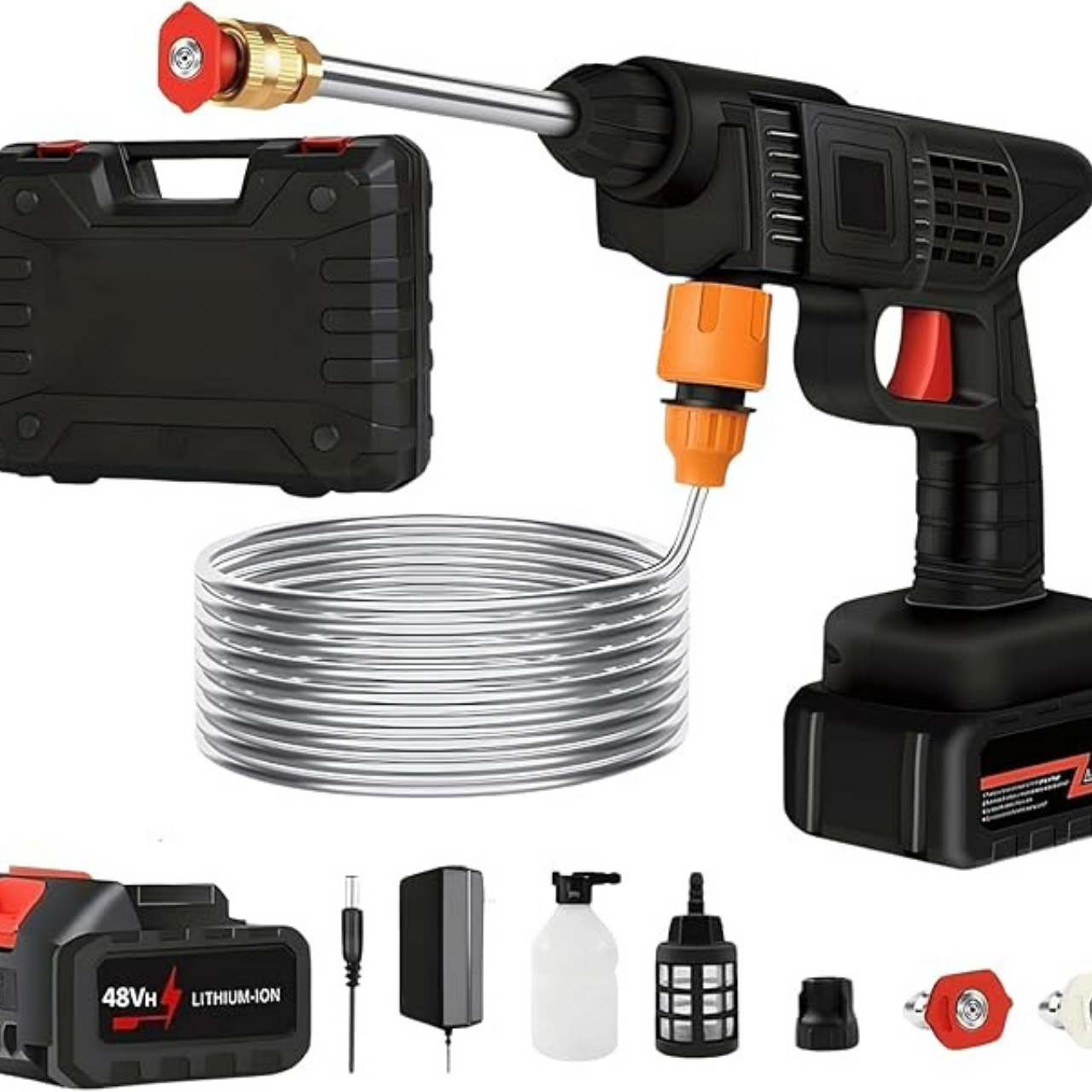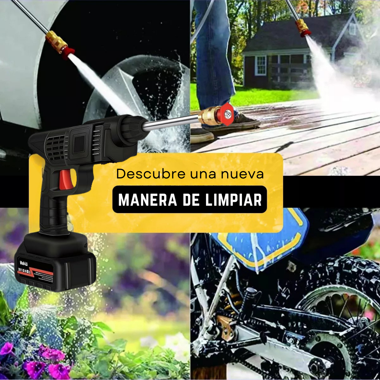 Con nuestra Hidrolavadora Inalambrica de alta presión 100% portátil, tendrás el poder de un lavado de alta presión profesional, potente y extremadamente rápido, sin necesidad de estar conectado a un tomacorriente ni llevar alargadores.
